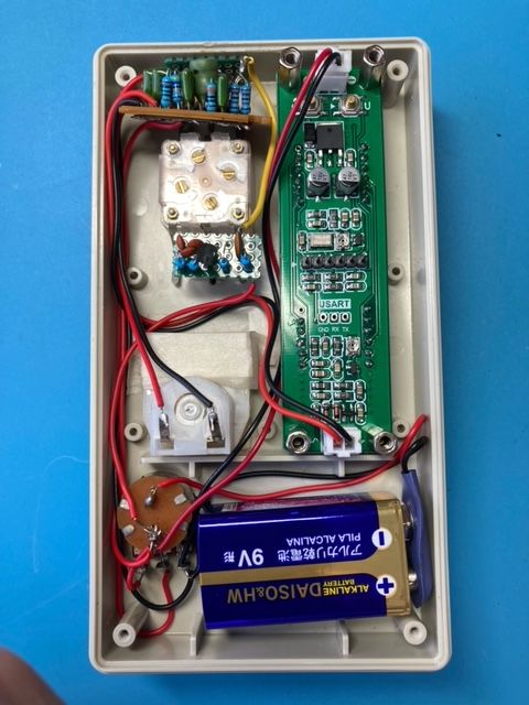回路を小さく作るとケースに入れやすいので、ユニバーサル基板を使用します。ディップメーター基盤と変調用発振基盤を分けて作ります。ケースは、タカチのプラスチック製のもの(RG-145S)を使いました。