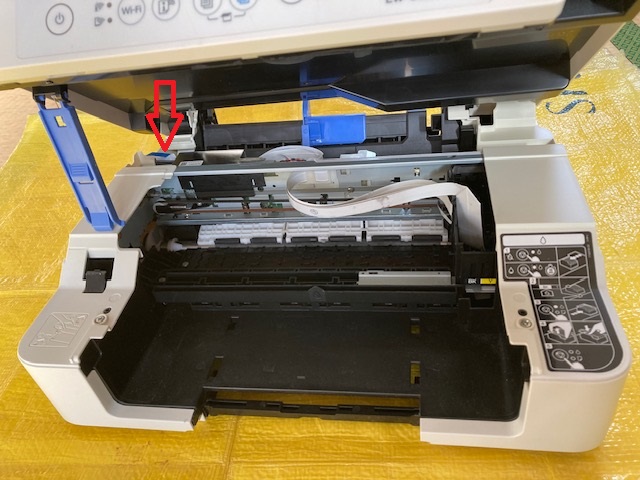 写真は、奥カバーとスキャナーユニットを外した状態です。