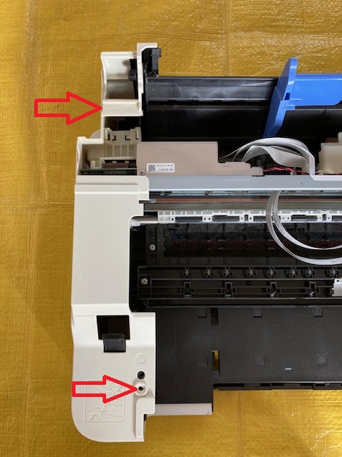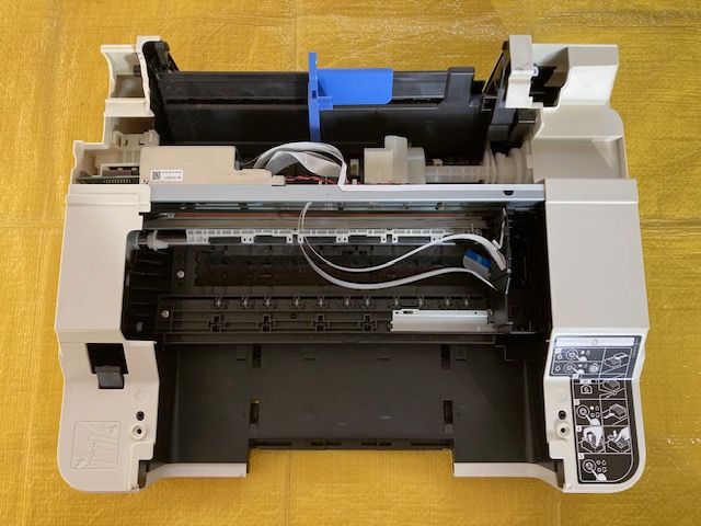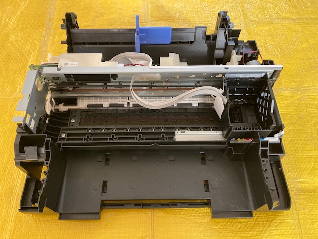 プリントヘッドの洗浄をしたところ、目詰まりは無く、正常に使えることがわかったので、プリントヘッドを取り外しました。残った本体を捨てる前に分解してみました。